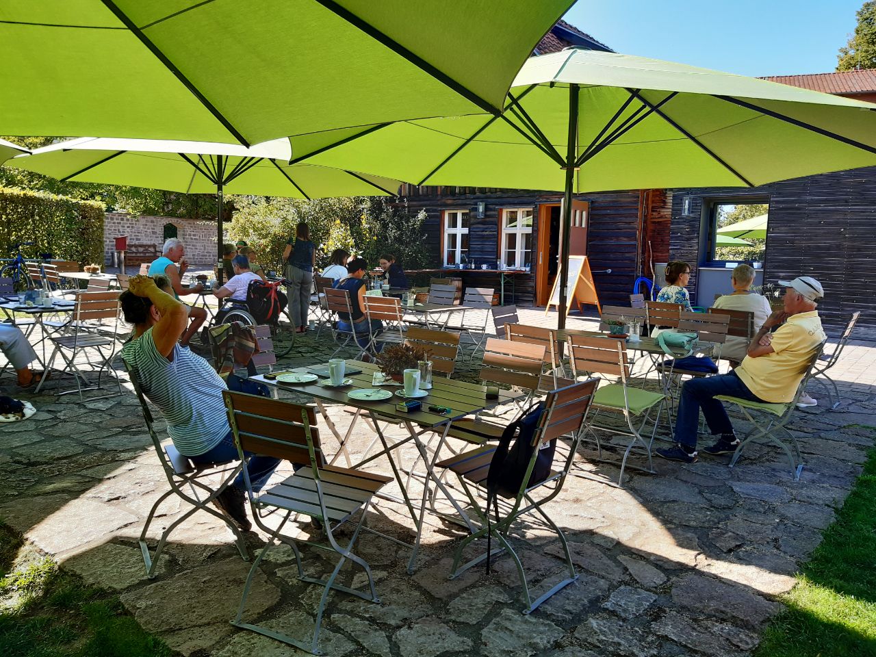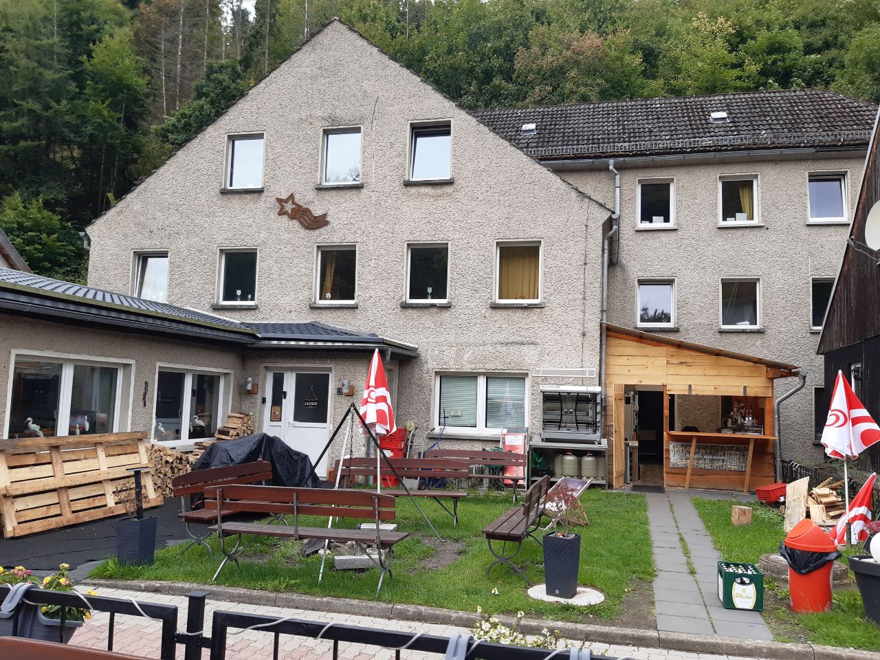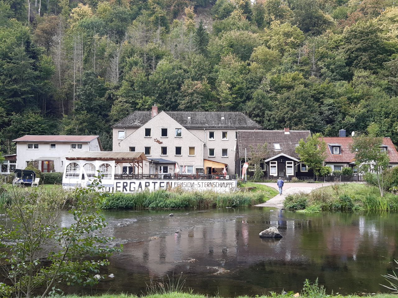 Die Pension Sternschnuppe mit Biergarten direkt am Wasser, Kesselgulasch und Feuerstelle liegt auf dem Ufer der Bode, das nur per Fußgängerbrücke oder Furt erreichbar ist. Dort gibt es an der Sommerküche zu jeder Zeit einen richtig guten Kaffee. Der Wirt ist sehr sympathisch! :)