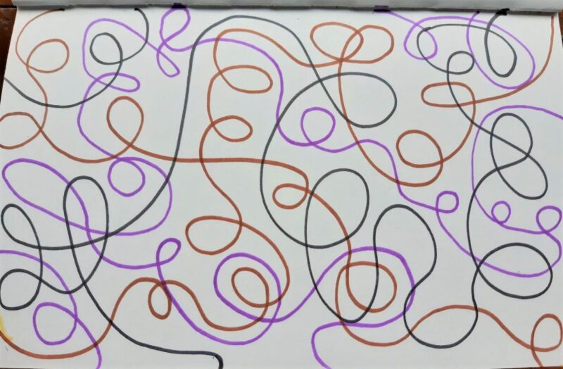 Kringel in schönen Farben – mal schauen, ob etwas daraus entsteht. Jedenfalls macht das Kringeln die Handgelenke geschmeidig…