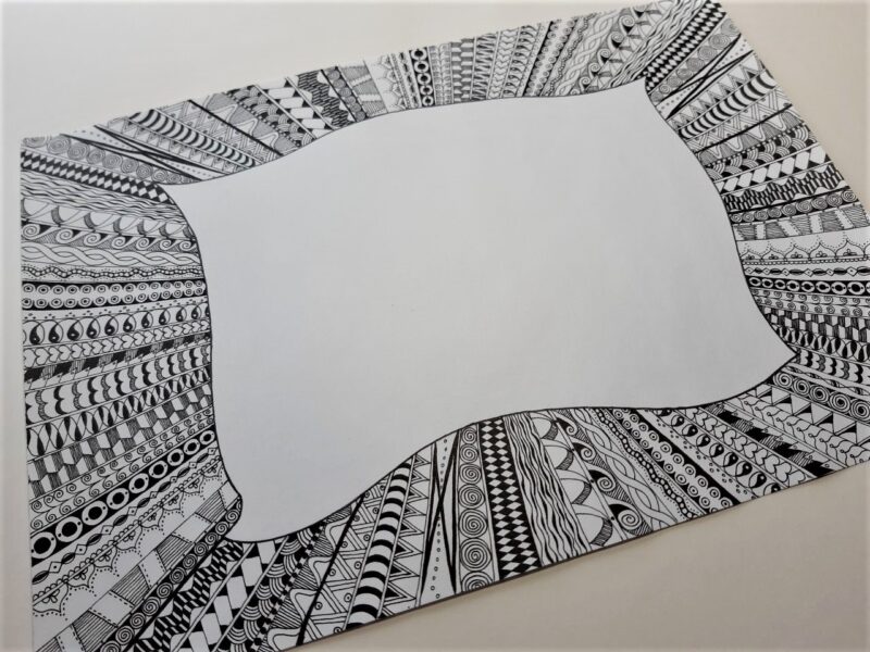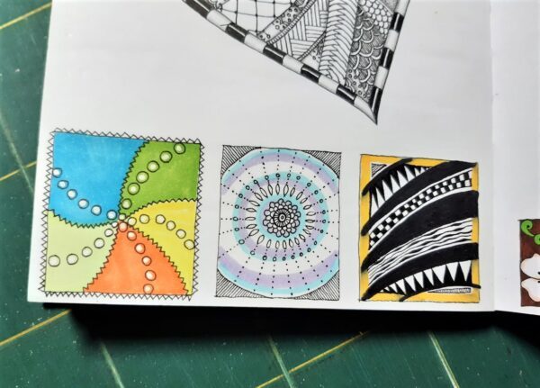 6. Du kannst im Skizzenbuch auch eine ganz kleine freie Ecke ausfüllen. Male Dir einfach einen Rahmen auf einer Seite, auf der noch etwas Platz ist, und fülle ihn spontan aus. Dadurch wird Dein Skizzenbuch beim Durchblättern schön bunt und abwechslungsreich. Gerade bei Büchern mit hochwertigeren Papieren lohnt es sich wirklich, den Platz auch auszunutzen.