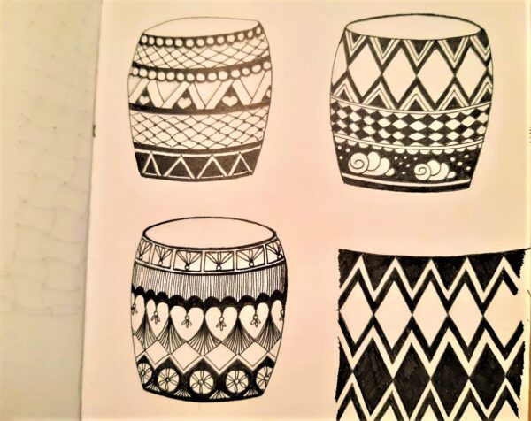 - ich überlege, wie die Vasen aussehen könnten und wie sich die Perspektive auf das Muster auswirkt
