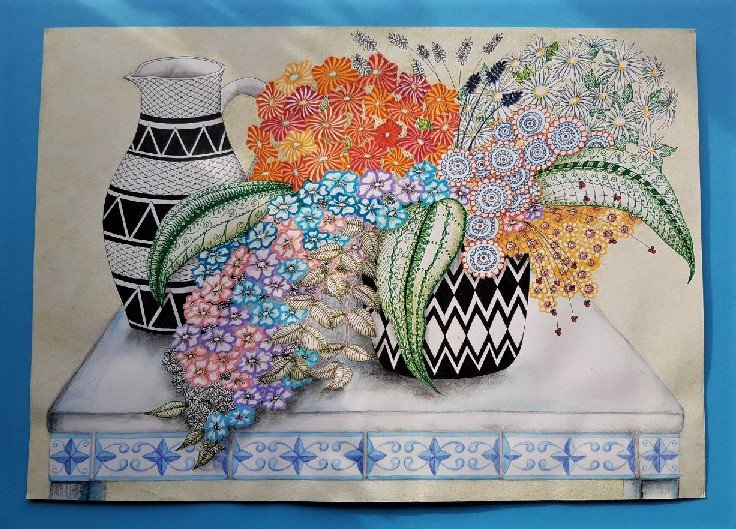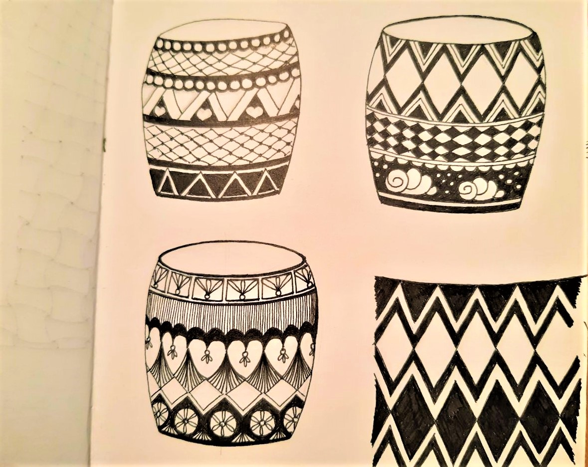 - ich überlege, wie die Vasen aussehen könnten und wie sich die Perspektive auf das Muster auswirkt