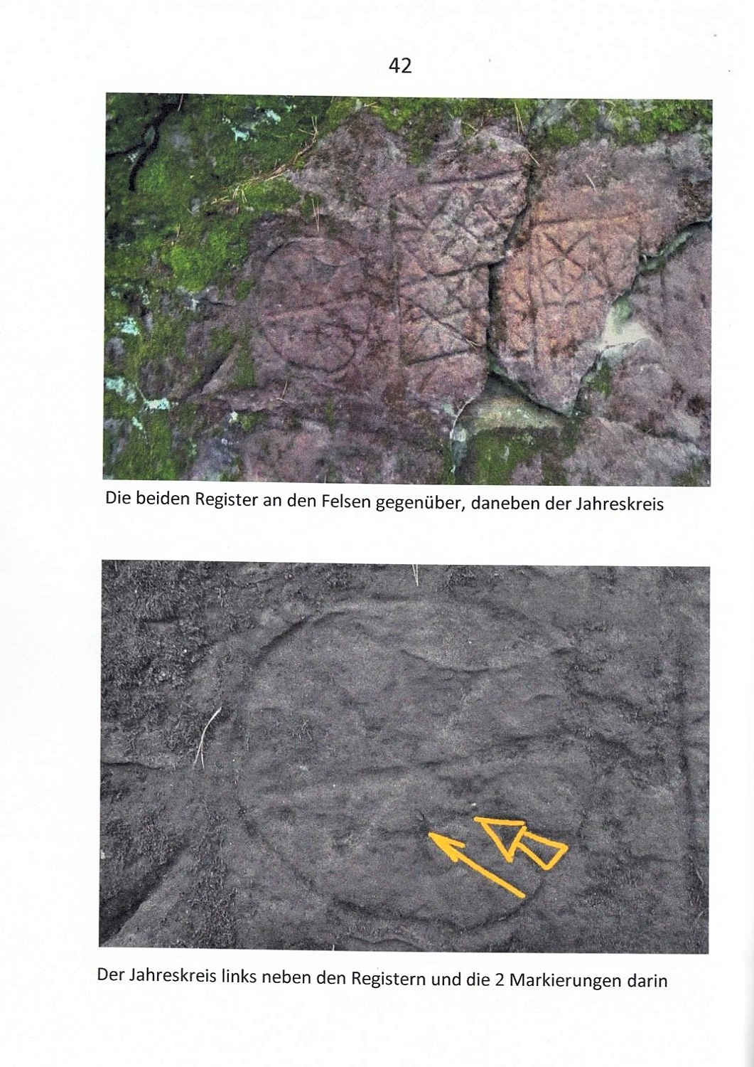 Die Berge wurden schon damals definitiv zumindest oft besucht, wenn nicht auch bewohnt. An geographisch günstigen Kuppen und Felsen wurden Zeichen und Spalte angebracht, mit deren Hilfe die Sonne zu bestimmten astronomischen Konstellationen wie Sonnenwenden und Tag- und Nachtgleichen anvisiert werden konnte. Das Wissen um diese besonderen Sonnenstände war wichtig, da an solchen Tagen Rituale und Feierlichkeiten stattfanden. Es gab große Stammes- oder Gautreffen, auf denen Informationen, Technologien, Waren … ausgetauscht wurden, vielleicht gab es Schwur-Rituale zur Festigung der Stammesgemeinschaft, es wurde gemeinsam gefeiert, junge Menschen trafen aufeinander, mit großer Sicherheit gab es auch rituelle Handlungen, vielleicht große Feuer, Opfer- und Dankesgaben, Gespräche mit den Göttern.