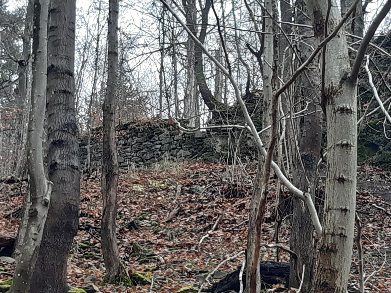 Die Lokalität Alt Michaelstein befindet sich auf einer Felskuppe am Weg vom Elbingeröder Komplex Richtung Goldbachtal. Es wird von einem Klosterbau der Zisterzienser dort oben berichtet. Rätselhaft ist die scheinbar kurze Nutzung des Klosters durch die Mönche, die kurz drauf ihre Planung änderten und sich ein neues Kloster am Talausgang bauten – das heutige Kloster Michaelstein bei Blankenburg. Vielleicht war hier auf diesem Bergsporn schon viel früher eine Heilige Stätte der Harzbewohner, und die Mönche schufen sich hier nur ein Übergangsdomizil? Für Alt Michaelstein wird die Erbauung um 1146 genannt, eventuell war es eine Erweiterung bestehender Gebäude – die Anlage ist riesig, Ruinenreste zeigen deutlich die Ausmaße, und die Rekonstruktion auf der Erklärtafel zeigt auch deutlich, was für ein eindrucksvoller Bau das war. Für die Kloster-Theorie sprechen auch die vom Goldbach gespeisten Fischteiche unterhalb des Klosters, und bestimmt gab es rundum auch Anbauflächen, denn man darf nicht von der heutigen Bewaldung ausgehen. Durch den steigenden Bedarf an Bauholz und Feuerung für die Schmelzöfen nahm der Baumbestand im Harz zu dieser Zeit schnell ab.
