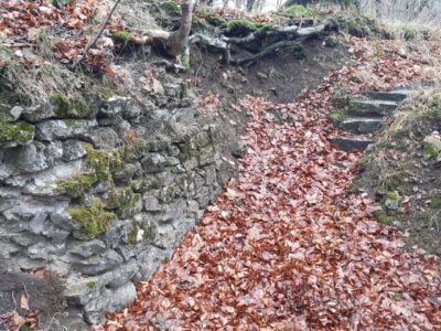 - wahrscheinlich ein alter Aufgang vom Weg her