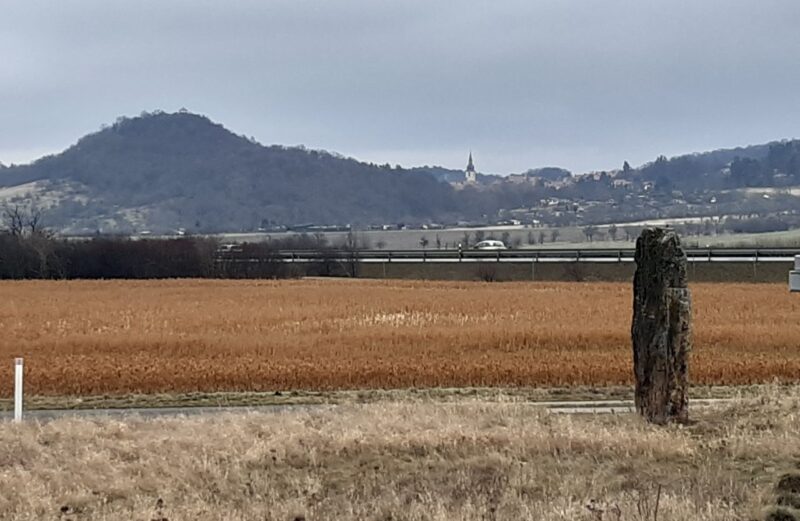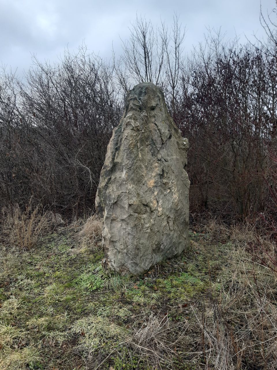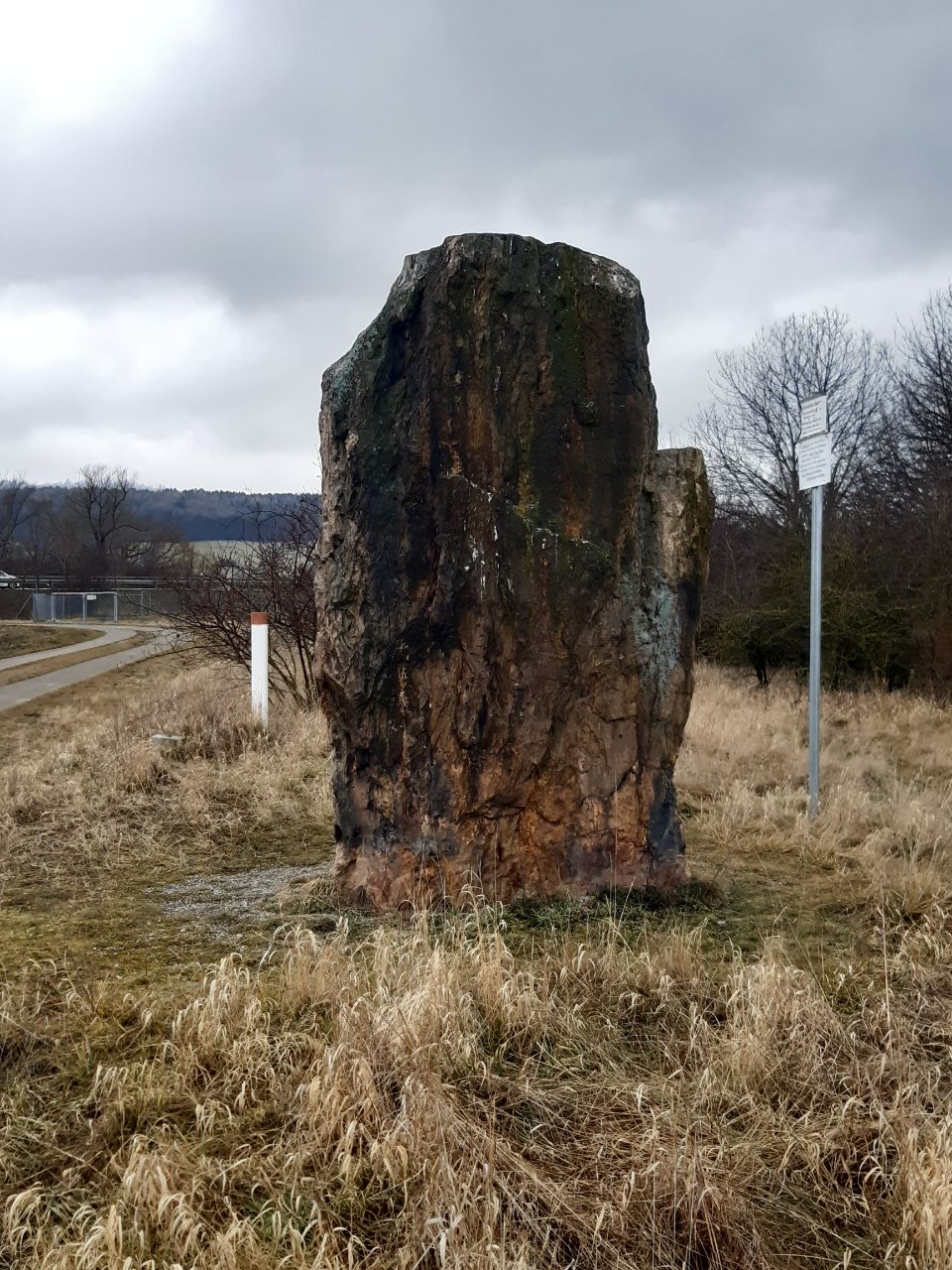 Titelbild: Wir stehen im nördlichen Harzvorland und schauen auf die ersten Berge des Harz. Hinten links im Bild befindet sich der Regenstein, rechts auf der Kuppe verbirgt sich die Burgruine Heimburg hinter der aktuellen Bewaldung – von beiden Bergen hat man eine exzellente Sicht über das Harzvorland. Beide Berge wurden im Frühmittelalter mit Burgen bebaut, waren jedoch ganz sicher bereits vor Jahrtausenden von unseren Altvorderen als Aussichts-, Beobachtungspunkt sowie Versammlungs- und / oder Feierort in Benutzung. Ganz rechts steht unser steinzeitlicher (?) Menhir-Freund. Obendrüber ganz rechts der Kirchturm von Heimburg. Noch ein paar Meter weiter nach rechts wurden ein bronzezeitliches Hügelgrab und ein Langhaus ergraben. Die Autobahn als Symbol der Neuzeit schlängelt sich vorsichtig durch die nebeneinander und übereinander befindlichen Kulturepochen. Hier war schon immer etwas los!
